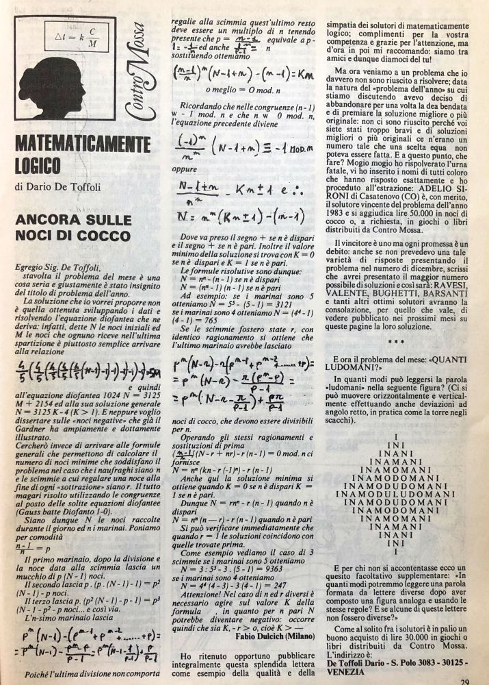 Questo mio problema e’ apparso in questi giorni sul JRM